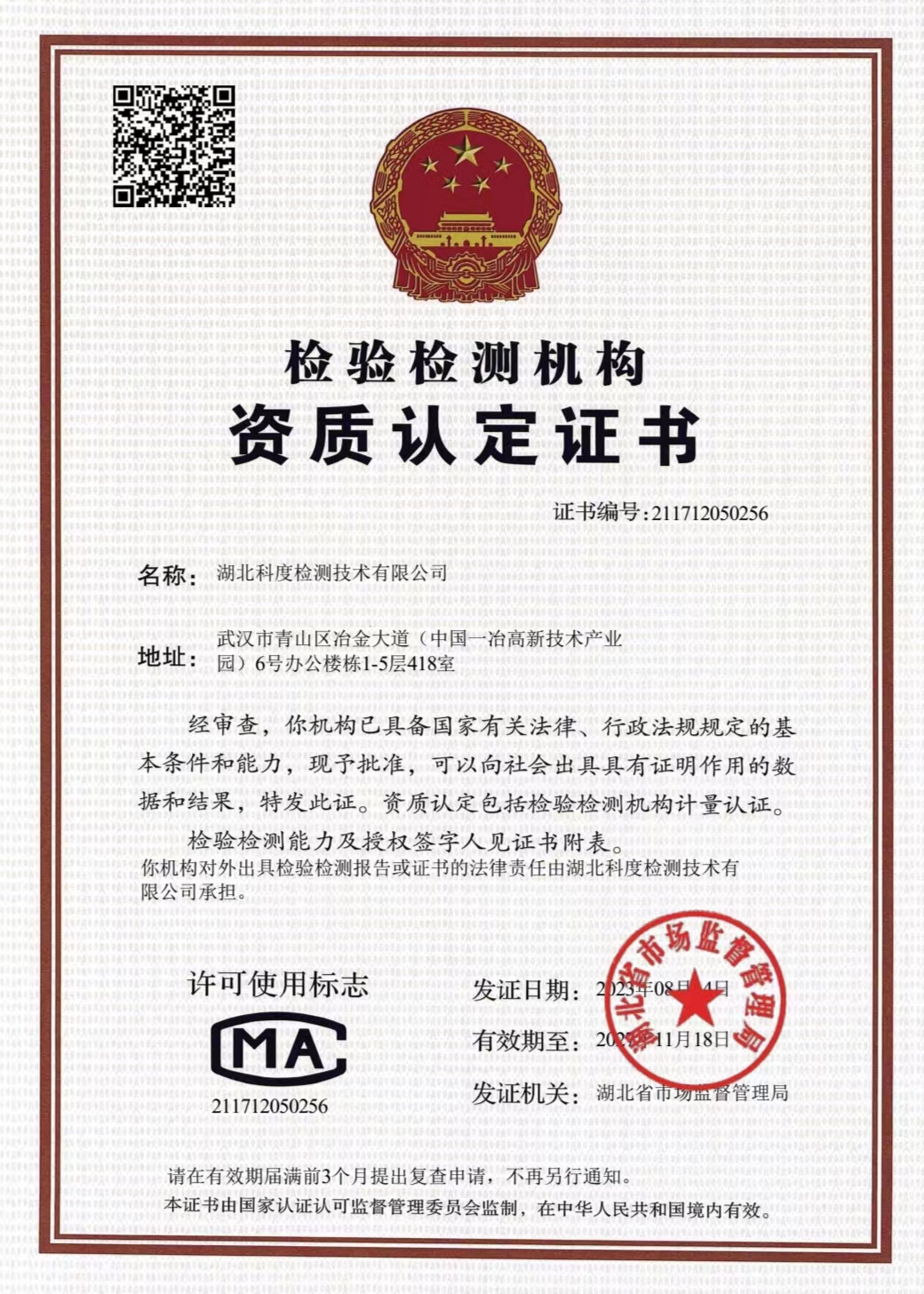 湖北科度檢測技術(shù)有限公司是一家專業(yè)從事環(huán)境類及相關(guān)領(lǐng)域檢測的第三方檢測機構(gòu),公司已通過湖北省市場監(jiān)督管理局CMA計量認(rèn)證,可以面向社會出具權(quán)威CMA檢測報告。 我公司實驗室嚴(yán)格按照國家標(biāo)準(zhǔn)建設(shè),擁有一大批國內(nèi)外先進(jìn)儀器設(shè)備及現(xiàn)代化配套設(shè)施,并有經(jīng)驗豐富的中高級專業(yè)技術(shù)人員和嚴(yán)格的實驗室質(zhì)量保證體系為項目運作提供強力支撐。 作為第三方檢測機構(gòu),公司始終以高度的社會責(zé)任感經(jīng)營企業(yè),以“公正、嚴(yán)謹(jǐn)、高效”為宗旨,依托專業(yè)的技術(shù)實力為客戶提供專業(yè)優(yōu)質(zhì)檢測服務(wù),受到政府、企業(yè)和社會各界的廣泛關(guān)注和認(rèn)可。
